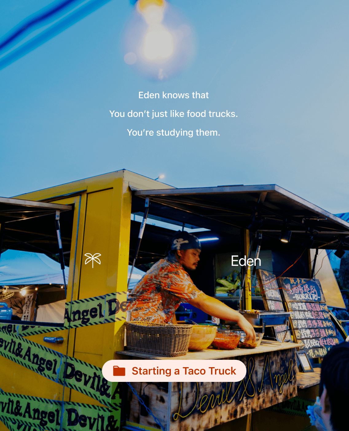 Eden is built on the belief that articulation is a barrier. People struggle to prompt their way into clarity; long conversations and explicit commands often get in the way of momentum.