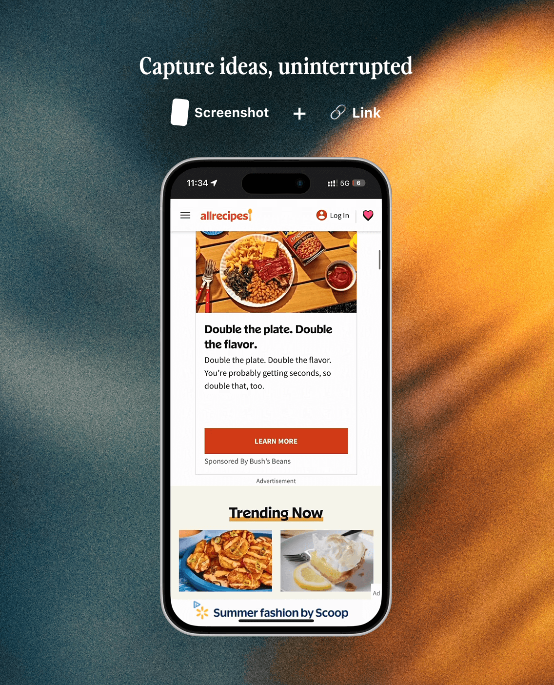 Ideas today are captured everywhere — Instagram, Pinterest, messages, notes, screenshots.