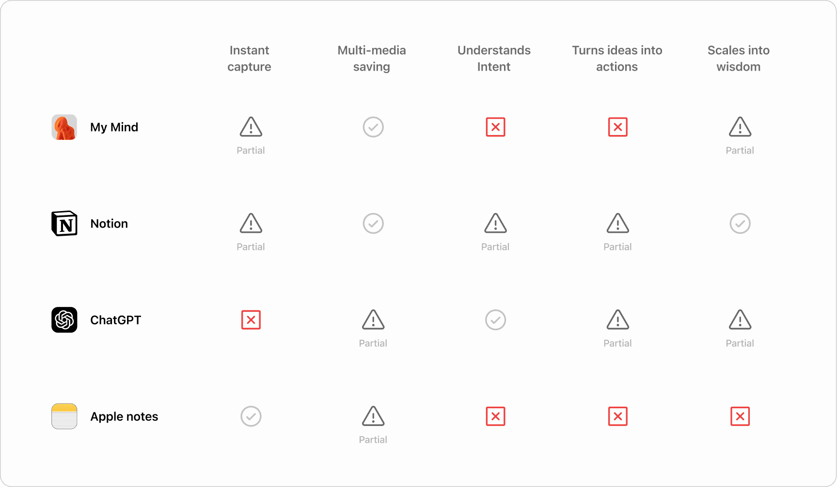 Each platform stores ideas in 🔒 isolation, based on where they were found, not how they’ll be used.