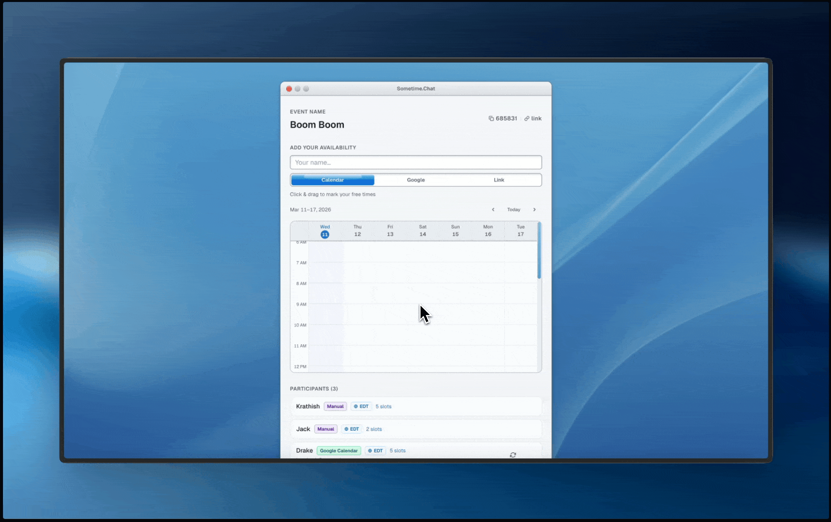 Common time finder tool. Mac OS Aqua style.